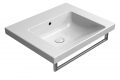 Washstand, rectangular, 800 x 500mm, basin mould rectangular and centred, glazed inside and outside, white, height 125mm, with tap hole and overflow, including fixing set and overflow set